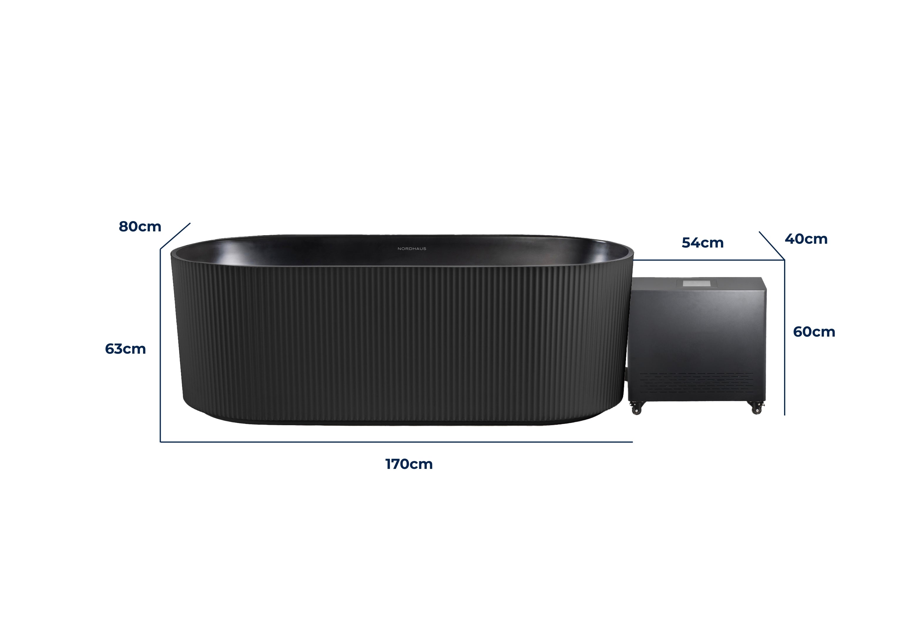 - Fluted Ice Bath: 170cm (L) x 80cm (W) 64cm (H)