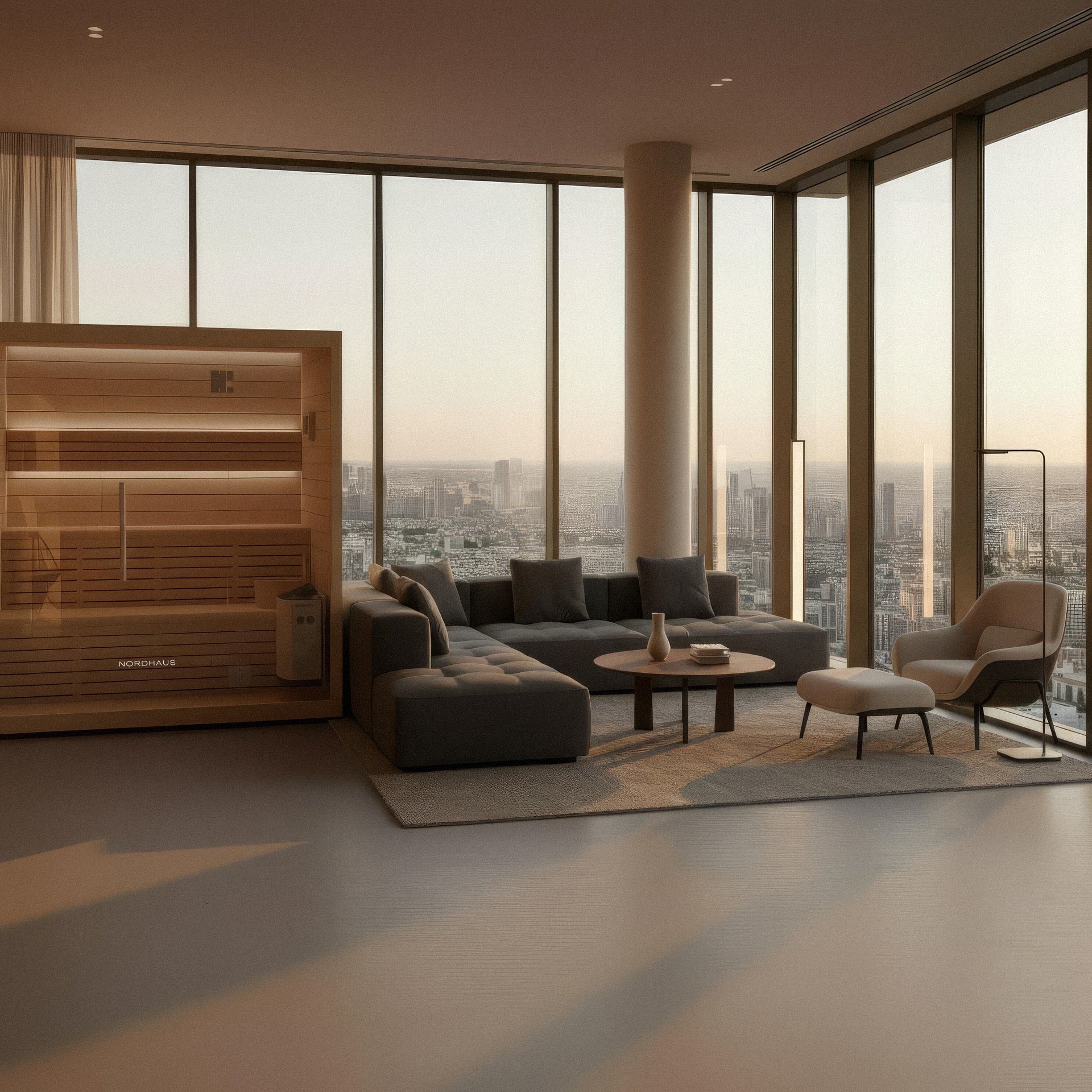 - Timeless Design - With full glass frontage, a light timber finish, and soft white LED lighting, this sauna offers an open, airy experience that fits seamlessly into any space.